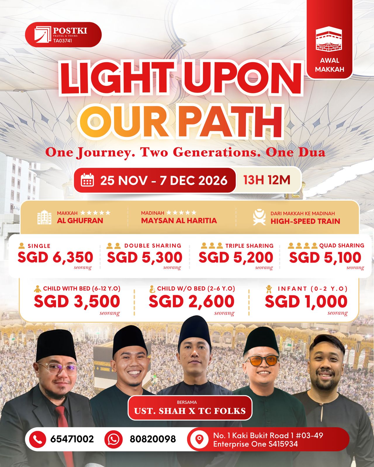 Nikmati pengalaman umrah yang lebih selesa dan tenang di musim sejuk, bersama bimbingan Ustaz Shaheedan serta pasukan TCF yang akan mendampingi perjalanan anda dari awal hingga akhir.