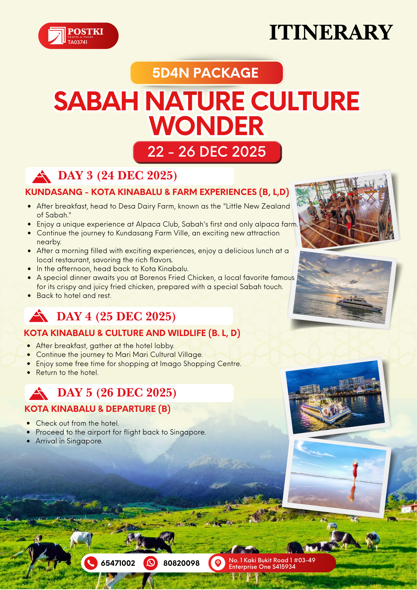 5D3N from $1000 (Min 10 pax) | from $950 (Min 20 pax)